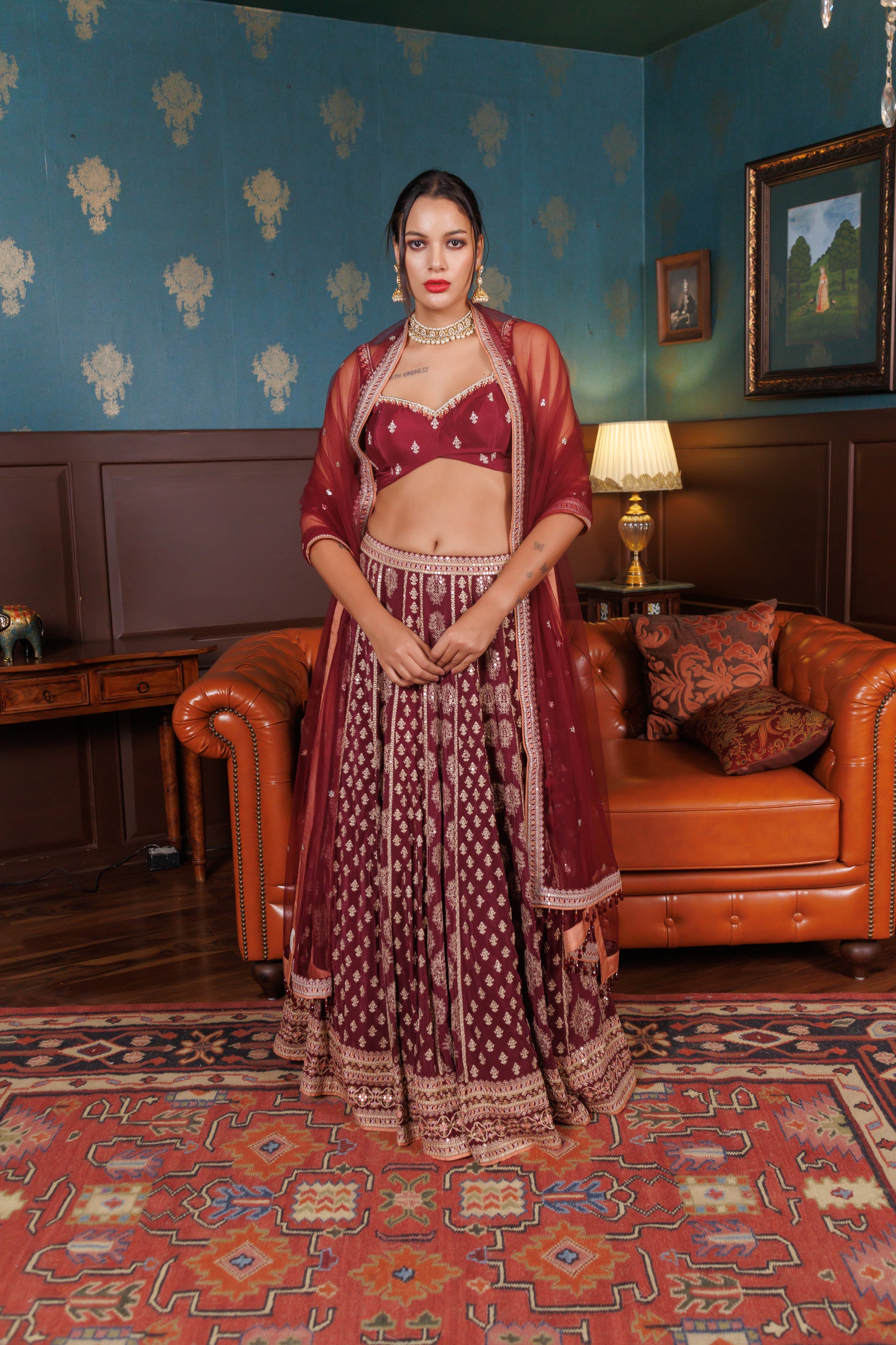 Embellished Burgundy Lehenga Set