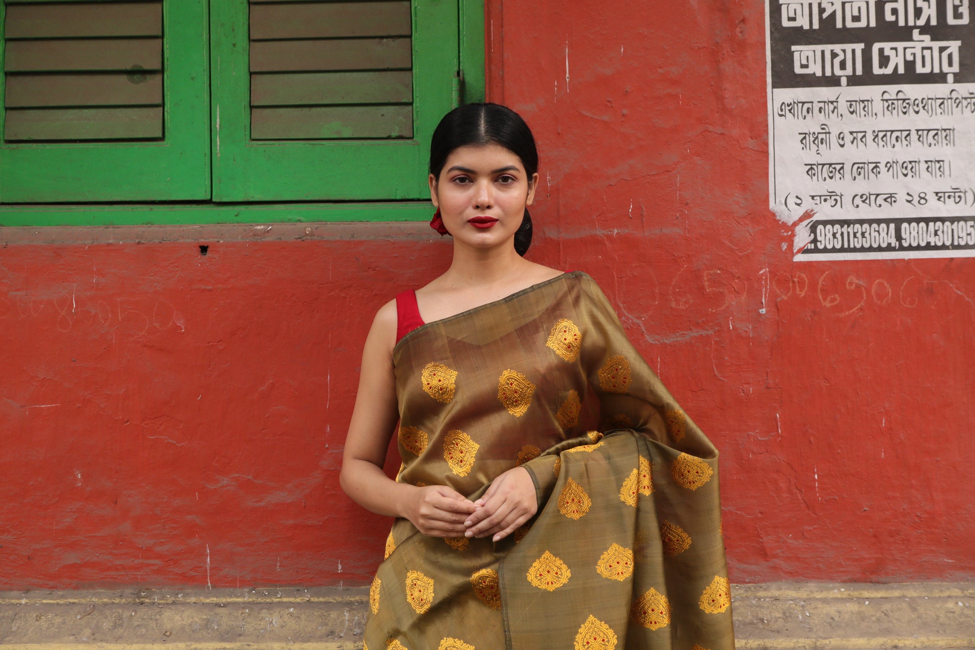 Go back in time with our classy vintage Royal Olive Gold Wedding Mekhela Chadar. This piece is delicately handwoven with a century-old Xingkhap motif and maroon meenakari is an elegance that never fades. This mekhela chadar comes with a rich olive gold brocade blouse piece.
