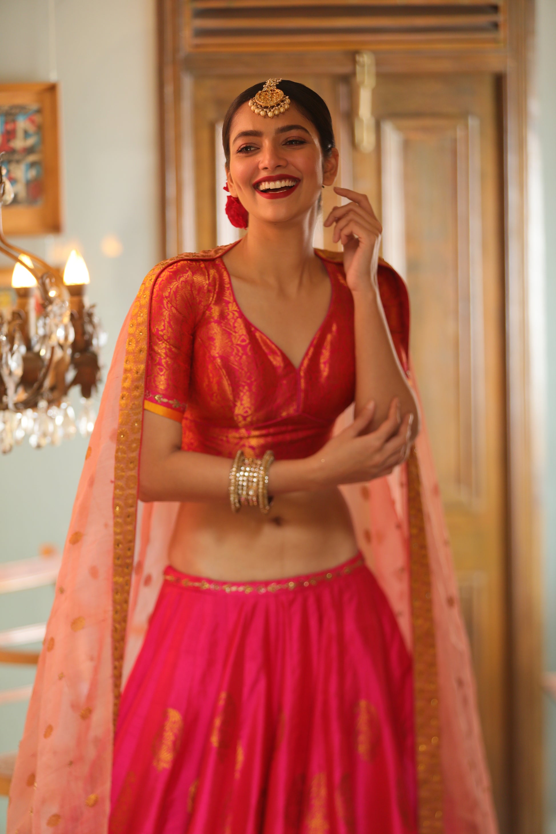 Contents: 100% Silk lehenga and blouse and 100% silk organza dupatta